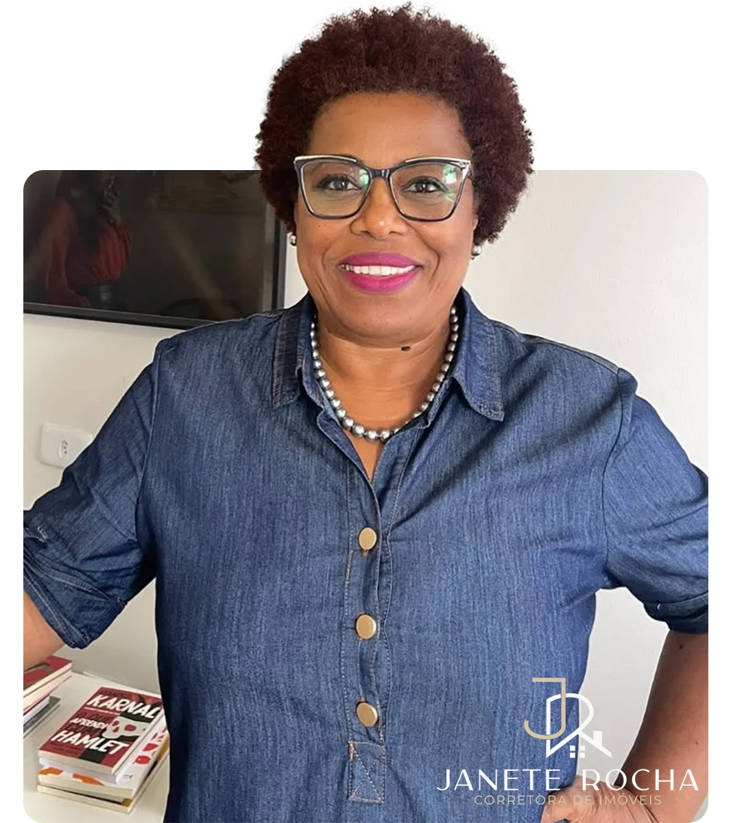 Sou corretora de imóveis, CRECI 182995-F, diretora da J. DA ROCHA IMÓVEIS, CRECI 31558-J, CNPJ 29.423.392.0001/83, com mais de 10 anos de experiência, ajudando inúmeras famílias a conquistarem seu primeiro lar com segurança e tranquilidade.